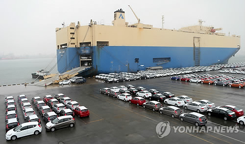 20일 업계에 따르면 올들어 2월까지 2개월 동안 국내 완성차업체의 수출 물량은 작년 같은 기간보다 8.4% 감소한 46만209대에 그쳤다. 주요 업체의 주력 모델 노후화와 엔저를 등에 업은 일본업체와의 경쟁이 심화된 요인도 있으나 러시아를 필두로 한 신흥시장 부진이 수출 감소의 직격탄이 됐다.