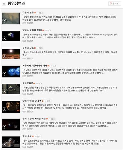 동영상 백과는 `별의 일생', `폐의 구조와 기능', `중력에 대한 이해' 등 텍스트보다 영상으로 이해가 쉬운 주제들을 집중적으로 다루고 있어 이용자의 간편한 지식 습득을 돕는다. 다이어트, 기타 코드 운지법 등 실용적인 정보도 포함돼 있다.