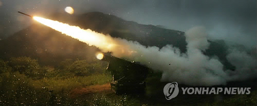 | △ 2012년 9월 강원도 철원 사격장에서 미2사단 제210화력여단이 다연장 로켓포 실사격 훈련을 하고 있다. (연합뉴스 자료사진) |