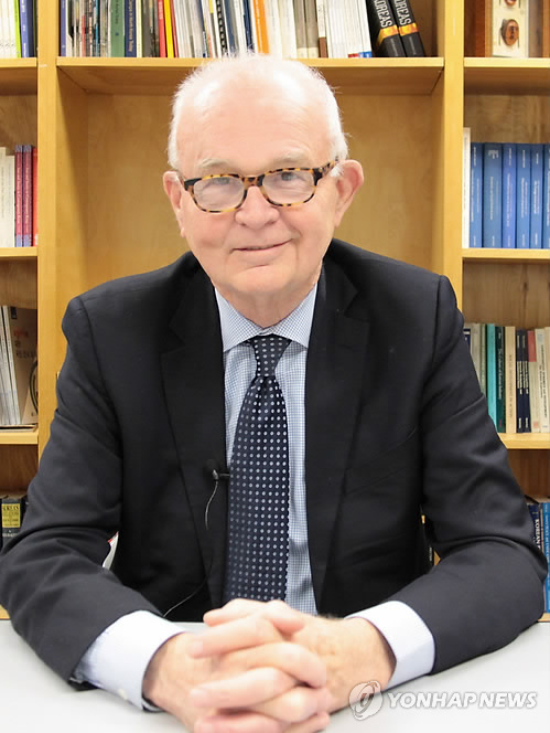 △ 주한 미국대사를 지낸 스티븐 보즈워스 미국 존스홉킨스대 국제관계대학원(SAIS) 한미연구소 소장이 21일(현지시간) 연합뉴스·연합뉴스TV와의 인터뷰에서 일본의 과거사 왜곡 및 위안부 부정 논란에 대해 입장을 밝히고 있다. 2015.03.22