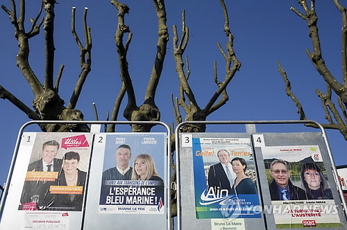| △ 22일(현지시간) 치러진 프랑스 지방선거 1차 투표에서 니콜라 사르코지 전 대통령이 이끄는 제1야당인 대중운동연합(UMP)이 1위를 차지할 것으로 전망됐다. 마린 르펜이 대표로 있는 극우정당인 국민전선(FN)은 프랑수아 올랑드 대통령이 소속된 집권 사회당(PS)을 제치고 2위를 차지할 것으로 보인다. (AP=연합뉴스) |