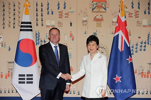 박 대통령은 이날 오전 청와대에서 한국을 공식 방한한 존 필립 키 뉴질랜드 총리와의 정상회담에서 "FTA 정식 서명으로 양국 관계는 경제는 물론이고 문화, 인적교류, 안보, 국제협력 이런 다방면에서 한 차원 더 높은 협력을 해나갈 수 있는 중요한 토대를 마련했다"며 이같이 밝혔다.