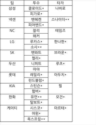 <프로야구> ⑤밴헤켄·테임즈 넘어설 새로운 외국인스타는