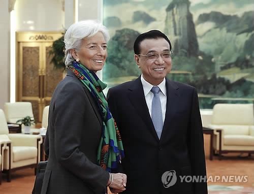 (베이징 신화=연합뉴스) 리커창(李克强) 중국 총리는 23일(현지시간) 중국을 방문한 크리스틴 라가르드 국제통화기금(IMF) 총재를 만나 국제준비통화인 특별인출권(SDR) 대상화폐(바스켓)에 위안화를 편입시켜 달라고 요청했다.