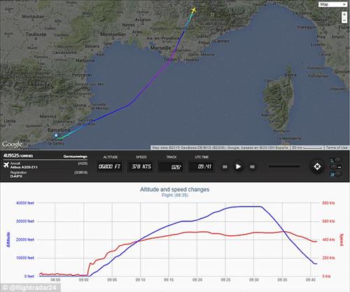 프랑스 내무부는 저먼윙스 여객기가 이륙 후 약 50분이 지난 오전 10시47분 조난 신호를 보냈다면서 이후 해발 2천m 높이의 산악 지대에서 사고기 잔해를 발견했다고 밝혔다.