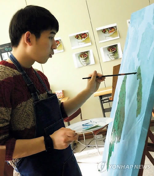 △ 발달장애 청년, 군산서 첫 개인 전시회 열어 (군산=연합뉴스) 김동철 기자 = 자폐성 발달장애 2급인 이남기(20)씨가 오는 4월 3일부터 일주일간 군산 예술의전당 제2전시실에서 그림 전시회를 연다. 이씨는 수채화와 아크릴화 32점을 선보인다. 2015.3.25 sollenso@yna.co.kr