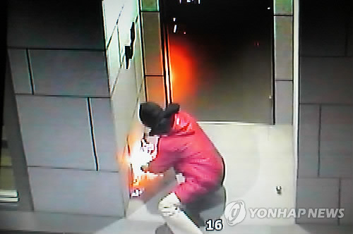 | △ 도쿄 한국문화원 상대 방화시도 (도쿄=연합뉴스) 26일 오후 일본 도쿄도 신주쿠(新宿)구 소재 한국문화원(코리아센터)의 보조 출입구 인근 외벽에 그을음이 남아 있다. 한국문화원 관계자에 따르면 전날 오후 11시 50분께 신원을 알 수 없는 인물이 이곳에 라이터용 기름을 붓고 방화를 시도했다. 이 건물에 입주한 한국관광공사 직원이 직후인 오후 11시 55분께 퇴근하면서 그을음을 확인하고 신고했고, 소방차가 출동해 불이 꺼진 현장 상황을 확인했다. 외벽은 석재여서 별다른 피해를 남기지 않은 채 불은 꺼졌다. 방화 시도 장면은 현장의 폐쇄회로 TV(CCTV)에 찍혔으며 범인은 불을 지르고 나서 곧바로 달아난 것으로 파악됐다. (주일한국문화원 제공) |