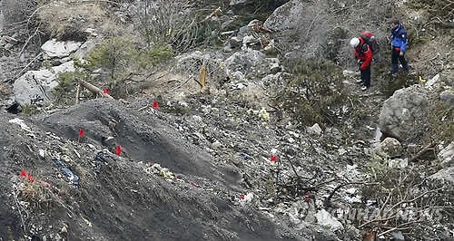 저먼윙스 여객기는 지난 24일 오전 스페인 바르셀로나 공항에서 출발해 독일 뒤셀도르프로 운항하다가 약 이륙 50분 만에 해발 2천m가량 되는 알프스 산에 추락했다.