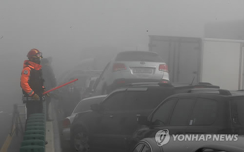 (서울=연합뉴스) 김윤구 기자 = 지난달 일어난 영종대교 106중 추돌 같은 짙은 안개로 인한 대형 교통사고를 예방하기 위해 가시거리가 10m 미만일 때 긴급히 통행을 제한하고 구간단속 카메라, 전광판식 속도표지판 등을 설치하는 방안이 추진된다