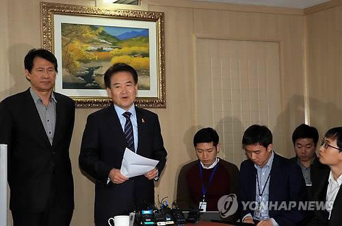 △ 정동영 전 의원, 4·29 재보선 출마 (서울=연합뉴스) 홍해인 기자 = 국민모임의 정동영 전 의원(왼쪽 둘째)이 30일 오전 서울 여의도 자신의 사무실에서 가진 4ㆍ29 재보선 출마 기자회견에 참석해 발언하고 있다.