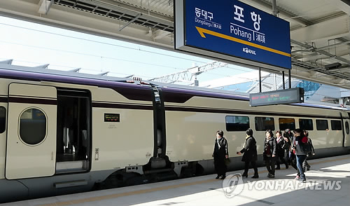 (포항=연합뉴스) 임상현 기자 = 포항∼서울간 KTX 개통으로 경북 동해안도 역사적인 'KTX 시대'를 맞았다.