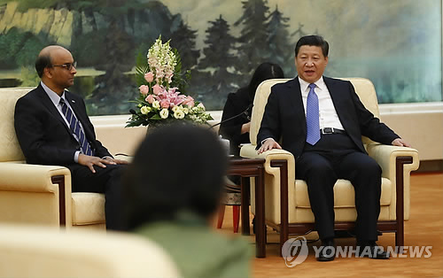 △ 지난해 10월 중국 AIIB 설립 양해각서 체결식에 참석한 시진핑 중국 국가주석(오른쪽) (EPA=연합뉴스 자료사진)