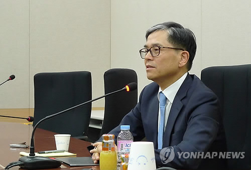 | △ 최석영 주제네바대표부 대사 (서울=연합뉴스) 김효정 기자 = 재외공관장회의 참석차 귀국한 최석영 주제네바대표부 대사가 31일 서울 외교부 청사에서 기자들과 만나 인터뷰를 하고 있다. |