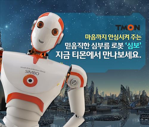 1일 온라인쇼핑사이트 티몬(www.tmon.co.kr)의 첫 화면에는 '심부름 로봇 심보(SIMBO)'라는 제품이 7천990만원의 가격표와 함께 소개됐다.