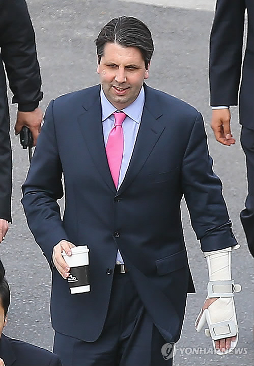| △ 한 손에 커피 들고 (서울=연합뉴스) 김도훈 기자 = 마크 리퍼트 주한 미국대사가 1일 오후 외교부 2차관과의 면담을 위해 서울 종로구 외교부 청사로 향하고 있다. |
