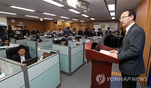 | △ 박경철 세월호 배·보상 지원단장 브리핑 (세종=연합뉴스) 배재만 기자 = 박경철 세월호 배상 및 보상 지원단장이 1일 오전 정부세종청사 해수부 기자실에서 전날 열린 세월호 배·보상 심의위원회 1차회의 결과 브리핑을 통해 세월호 사고 피해자에 대한 배·보상 지급기준 등을 의결하고 4월부터 설명회 개최와 현장 접수 등 배·보상 절차에 착수한다고 밝히고 있다. |