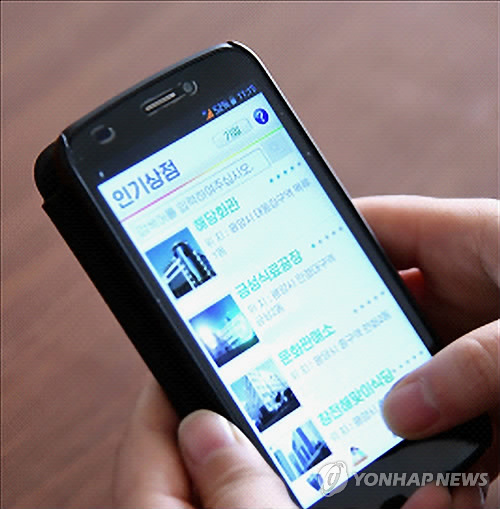 △ 휴대전화로 쇼핑하는 북한 주민 (서울=연합뉴스) 재일본조선인총연합회 기관지 조선신보는 2일 북한 주민이 휴대전화로 온라인 쇼핑을 하는 모습을 담은 사진을 공개했다. 앞서 조선중앙통신은 1일 '전자결제카드'로 운영되는 전자상업 봉사체계 '옥류'가 운영되고 있다며 "인민들의 편리성을 도모하고 근로자들의 생산열의를 추동하자는데 그 운영 목적이 있다"고 밝혔다. 2015.4.3 nkphoto@yna.co.kr