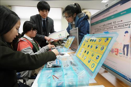 삼성전자는 교재와 교구, 교사 연수 프로그램 등 소프트웨어 교육에 필요한 자원을 지원한다.