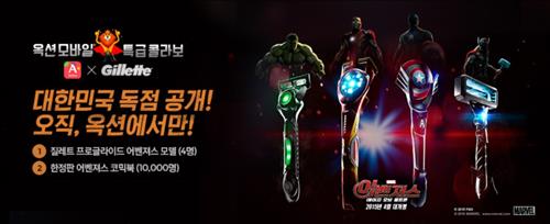 (서울=연합뉴스) 고유선 기자 = 온라인 마켓 옥션(www.auction.co.kr)은 2일부터 질레트 면도기를 구매하는 고객에게 한정판 '어벤져스' 관련 사은품을 증정하는 행사를 연다고 밝혔다.