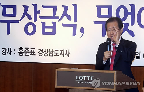 (부산=연합뉴스) 김선호 기자 = 홍준표 경남도지사는 3일 "무상급식 지원 중단으로 아이들이 상처를 받는다는 진보좌파들의 말은 저급한 감성논리"라고 말했다.