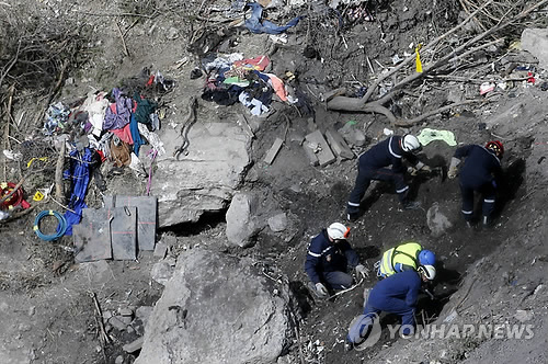 △ 독일 저먼윙스 여객기 두번째 블랙박스에서 부기장이 고의로 추락시켰다는 증거가 또 확인 됐다. 시진은 사고기 추가 잔해·블랙박스 수습 작업 (EPA=연합뉴스)