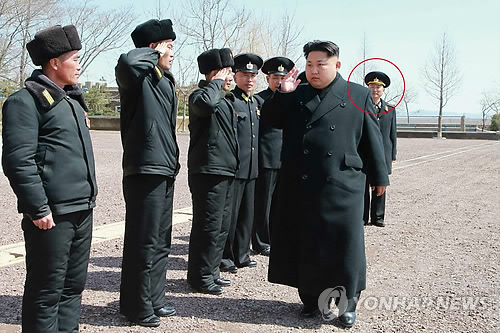 △ 북한 해군사령관 리용주로 교체 (서울=연합뉴스) 북한 인민군 해군사령관이 김명식에서 리용주 군 부총참모장(붉은 원)으로 교체된 사실이 4일 노동신문 보도로 확인됐다. 노동신문은 이날 김정은 국방위원회 제1위원장의 인민군 제164부대 시찰 소식을 전하며 리용주를 해군사령관으로 호칭했다. 리 신임 해군사령관은 이에 따라 기존 중장(별 2개)에서 상장(별 3개)로 승진했다. 2015.4.4 nkphoto@yna.co.kr