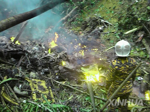| △ 4일 탑승자 6명이 모두 숨진 말레이시아 헬리콥터 추락 현장 (신화=연합뉴스) |