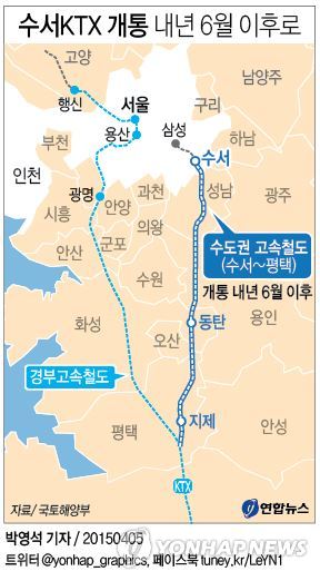 (서울=연합뉴스) 김윤구 기자 = 서울 강남 수서역에서 출발하는 수도권 고속철도(수서∼평택 구간)의 개통이 당초 일정보다 6개월 늦어진 내년 6월 이후로 미뤄질 것으로 보인다.