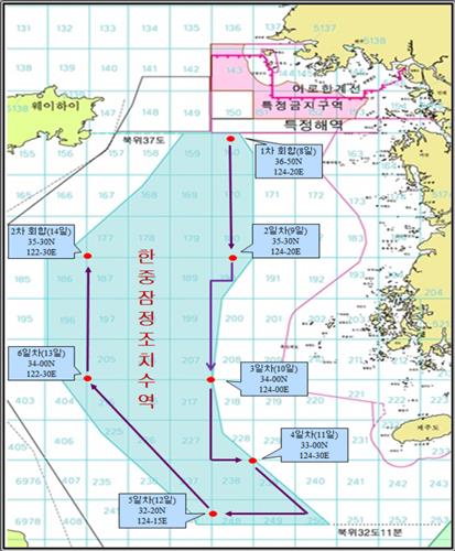 잠정조치수역은 2001년 체결된 한중어업협정에 따라 양국어선이 신고 없이 자유롭게 조업할 수 있는 곳이다.