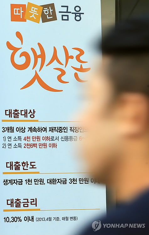 (서울=연합뉴스) 박용주 기자 = 정부가 햇살론과 바꿔드림론 같은 대표적인 정책성 서민금융 상품의 대출금리를 전반적으로 낮추는 방안을 추진하고 있다.
