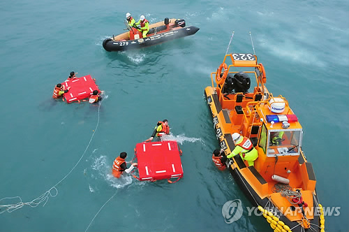 | △ 서해해양경비안전본부가 지난 3월 전남 완도항에서 실시한 2015년 해양안전 종합훈련(연합뉴스 자료사진) |