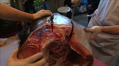 100㎏ 참치 뼈와 살을 가르는 사람들