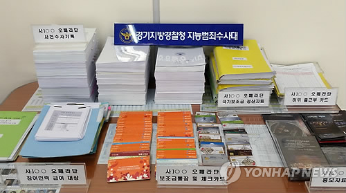| △ 조작된 출근부 등 압수품 (수원=연합뉴스) 경기지방경찰청 지능범죄수사대는 7일 출근부 등을 조작해 수억원 상당의 국가보조금을 부정수급한 혐의(보조금관리법 위반 등)로 모 사단법인 오페라단 단장 최모(55)씨에 대해 구속영장을 신청하고 문모(57)씨 등 단원 22명을 불구속 입건했다. 최씨 등은 2011년 10월부터 지난해 12월까지 경기도 수원시 소재에서 오페라단을 운영하면서 실제 근무하지 않았는데도 근무한 것처럼 출석부를 조작하는 등 3억7천만원 상당의 보조금을 부정 수령했다. 사진은 허위로 작성된 출근부 등 압수품. 2015.4.7 <<경기지방경찰청>> you@yna.co.kr |