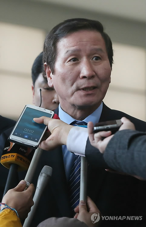 | △ '개성 다녀왔습니다' (파주=연합뉴스) 임병식 기자 = 정기섭 개성공단기업협회장이 7일 오후 경기도 파주시 경의선 남북출입사무소에서 입경 후 취재진 질문에 답하고 있다. 2015.4.7 andphotodo@yna.co.kr |
