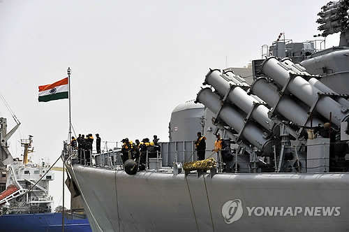 | △ 6일 예멘 호데이다 항구에서 자국민과 외국인의 철수를 지원하고 있는 인도 해군 함정(EPA=연합뉴스) |