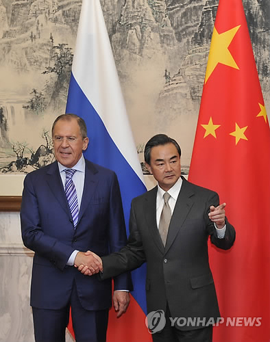 | △ 세르게이 라브로프 러시아 외무장관과 왕이 중국 외교부장 (AP=연합뉴스 자료사진) |