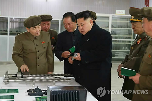 (서울=연합뉴스) 이상현 기자 = 북한 김정은 국방위원회 제1위원장이 군수용 전자설비를 생산하는 평양시내 공장을 시찰했다.