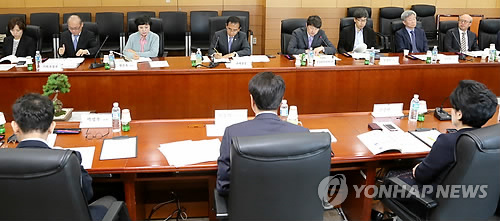 | △ '2015년 관세행정 비정상의 정상화 추진위원회' (서울=연합뉴스) 8일 서울 강남구 서울세관에서 열린 '2015년 제1회 관세행정 비정상의 정상화 추진위원회'에 참석한 김낙회 관세청장과 민관위원들이 추진과제를 논의하고 있다. (관세청 제공) |