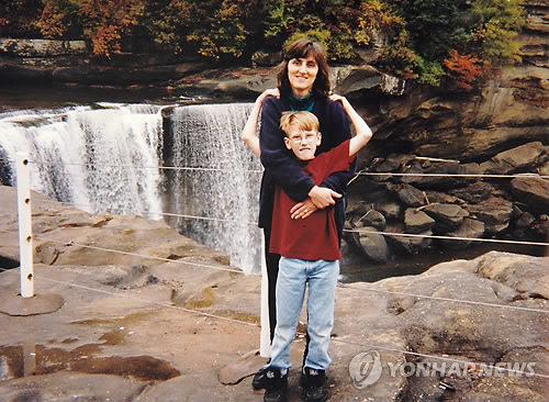 | △ 'IS 참수 예고' 인질 부모, 석방 간청 (AP/피터 캐식 가족=연합뉴스) 이슬람 수니파 극단주의 무장단체인 이슬람국가(IS)가 영국인 인질 앨런 헤닝(47) 참수후 다음 차례로 살해하겠다고 협박한 미국인 피터 캐식(26)이 열두살 때인 지난 2000년 엄마 폴라 캐식과 켄터키주 큠버랜드 폭포로 여행했을 때의 모습. 미군 특수부대 출신 구호활동가인 피터는 시리아 난민을 돕는 '특수긴급대응지원'(SERA)이란 비정부 단체를 직접 만들어 시리아·레바논 등지에서 구호 활동을 벌이던 중 지난해 10월 레바논에서 시리아 동부로 넘어가다 IS에 납치됐다. 폴라는 아들이 IS에 붙잡히고 나서 이슬람교로 개종했고 이름도 압둘 라흐만으로 바꿨다는 메시지를 보내왔다고 소개했다. 피터의 부모는 4일 아들의 석방을 호소하는 동영상을 내보냈다. In this 2000 photo provided by the Kassig Family, Abdul-Rahman Kassig poses for a photo with his mother, Paula Kassig, at Cumberland Falls State Resort Park near Corbin, Ky. Ed and Paula Kassig said in a statement Sunday, Oct. 5, 2014, that their son, Abdul-Rahman formally known as Peter, indicated he wasn't forced to convert to Islam and is at peace with his beliefs. The Islamic State group has threatened to behead the 26-year-old, who was captured Oct. 1, 2013. (AP Photo/Courtesy Kassig Family) |