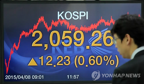 (서울=연합뉴스) 임수정 기자 = 코스피가 8일 유동성 장세와 1분기 기업 실적에 대한 기대감으로 2,060선 고지에 바짝 다가섰다.