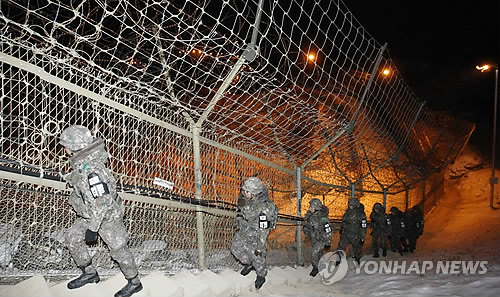 △ 강원 철원군 중부전선에서 육군 6사단 병사들이 철책을 점검하며 경계근무를 하고 있다.(연합뉴스 자료사진)