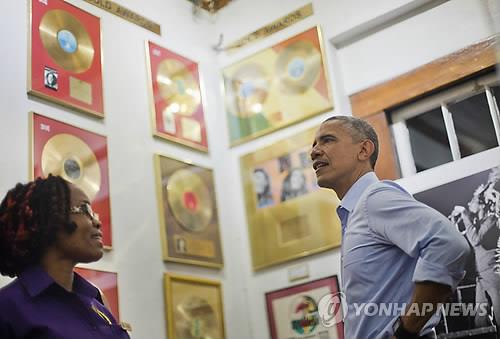 스피커에서 밥 말리의 대표곡 중 하나인 '원 러브'(One Love)가 흘러나오는 동안 벽에 걸린 말리의 앨범과 상들을 둘러보던 오바마 대통령은 "나도 아직 모든 앨범을 갖고 있다"고 말하기도 했다.