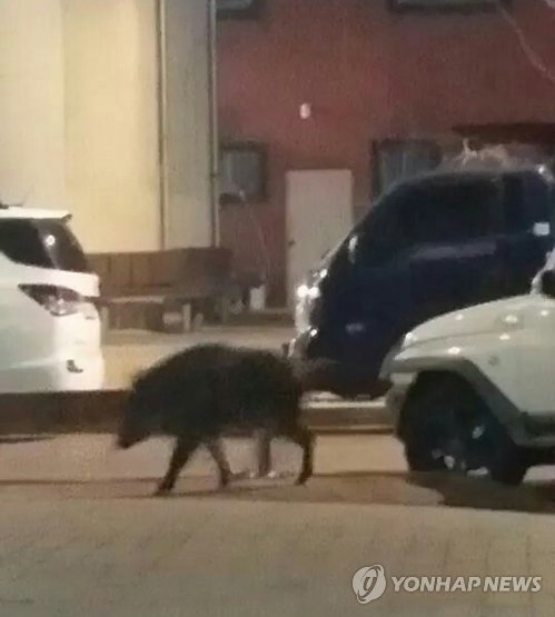 (의정부=연합뉴스) 최재훈 기자 = 최근 열흘 새 경기북부지역 도로와 상가에 야생 멧돼지가 잇따라 출몰해 주민들을 놀라게 했다.