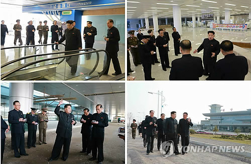조선중앙통신은 12일 김 제1위원장이 김양건 노동당 비서, 리재일·리병철 당 제1부부장, 김여정·김능오 당 부부장을 대동하고 평양국제비행장(순안국제공항) 2항공역사 공사 현장을 시찰했다고 전했다.