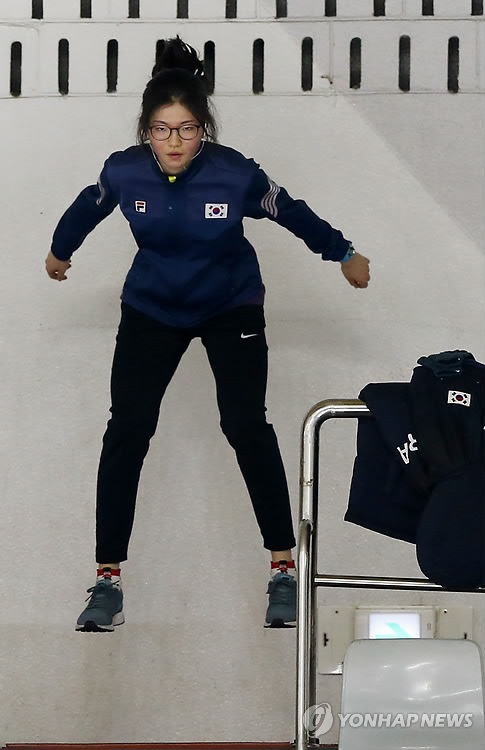 | △ 훈련하는 심석희 (서울=연합뉴스) 윤동진 기자 = 8일 서울 목동아이스링크장에서 열린 '2015/16 시즌 쇼트트랙 국가대표 1차 선발대회'에서 심석희(IB월드와이드)가 훈련을 하고 있다. 심석희는 2014-2015 대표팀 자격으로 오는 11일, 12일 2차 선발전부터 출전한다. 2015.4.8 mon@yna.co.kr |