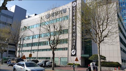 | △ 경남기업 동대문구 답십리 본사 사옥에 걸린 성완종 전 회장 애도 현수막 |