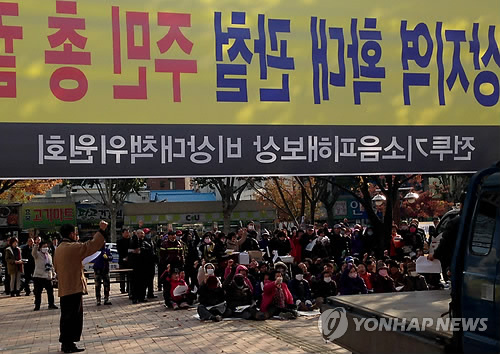 △ 대구 동구 주민들이 2013년 11월 K-2 전투기 소음 피해 보상을 요구하고 있다. <<연합뉴스DB>>