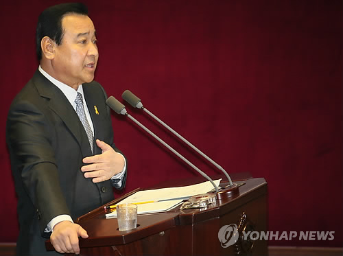 △ 국회 답변하는 이완구 (서울=연합뉴스) 진성철 기자 = 이완구 국무총리가 15일 국회 본회의에서 진행된 경제분야 대정부질문에서 성완종 전 경남기업회장으로부터의 금품수수 의혹에 대한 질의에 답변하고 있다.