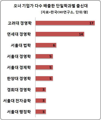 단일 학과로 따지면 고려대 경영학과 출신의 오너 경영자가 가장 많았다.