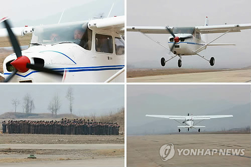△ 북한 노동당 기관지 노동신문은 지난 1일 김정은 국방위원회 제1위원장이 군수기계공장을 방문해 새로 제작한 경비행기의 시험 비행을 참관한 데 이어 직접 경비행기에 올라 이·착륙 시험 비행을 진행했다고 밝혔다.<<연합뉴스DB >>